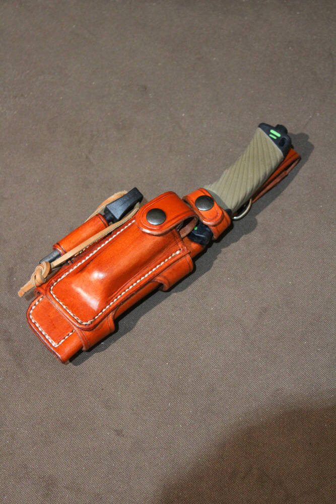 Ledergürtel mit Trägern Dadurch läßt sich viel, bzw. schwere Ausrüstung sehr bequem tragen.